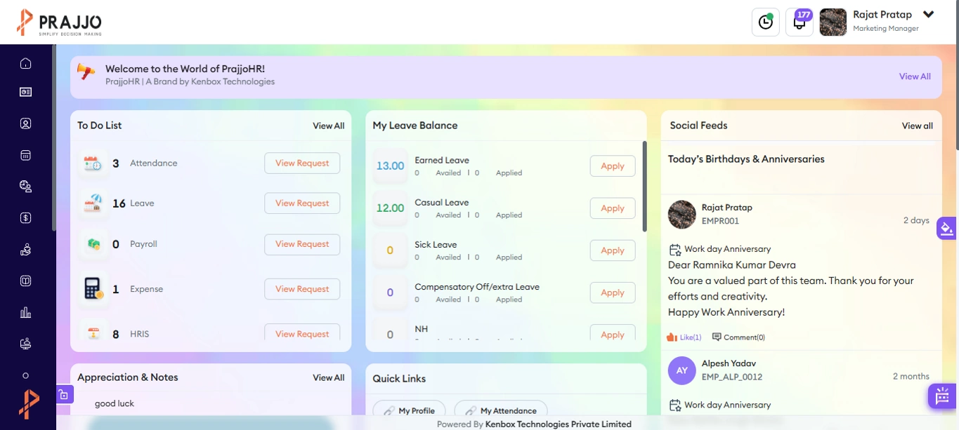 Finding an HRMS solution that supports your overall growth strategy while being easy to use, fast to implement, flexible for future growth, robust in terms of security, and compliant with various regulations can be challenging in the HRMS marketplace. PrajjoHR has created the ideal combination of all these attributes.